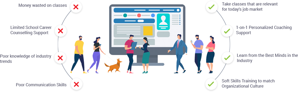 Corporations always prefer candidates who have a good combination of Technical & Soft Skills. If you are a student or a new graduate, then landing that job is not always easy. Sometimes high scores won't fetch you the job you would want. For that you need some additional training from experienced individuals, mentors/coaches who can guide you and industry experts who have relationships with the Fortune 500 companies and can enlighten you regarding the culture in these corporations. Give us a try and click the button below so that we may assess your current skill set and guide you towards your future career.